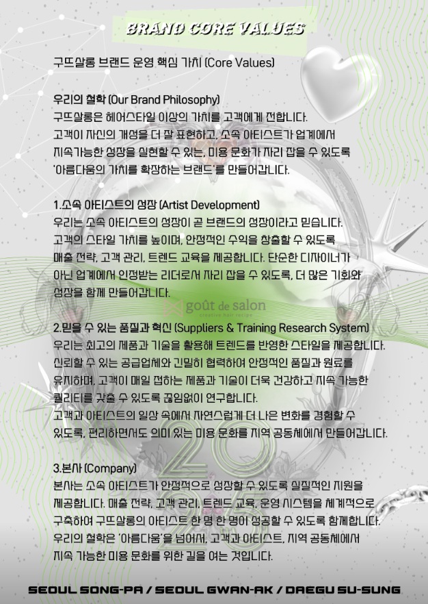 구뜨살롱 브랜드 운영 핵심 가치 [Brand Core Values]